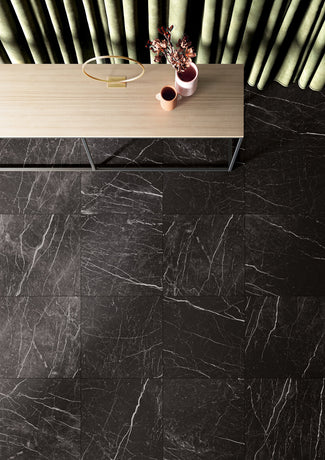 Classic marble is transformed into porcelain stoneware with high graphic definition and it decisively interprets contemporary style. The endless patterns of the veins are immersed in the dense and enveloping colours of the material, creating harmonious atmospheres of singular beauty.