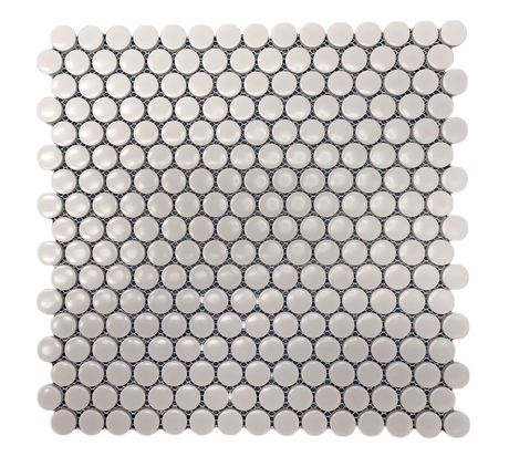 Photo of The Beaufort Display by PlunkettManufacturer Jadidi Collection Penny Round Stocked Sizes 20mm, 300x300mm sheet Colours Black, White, Baby Pink...